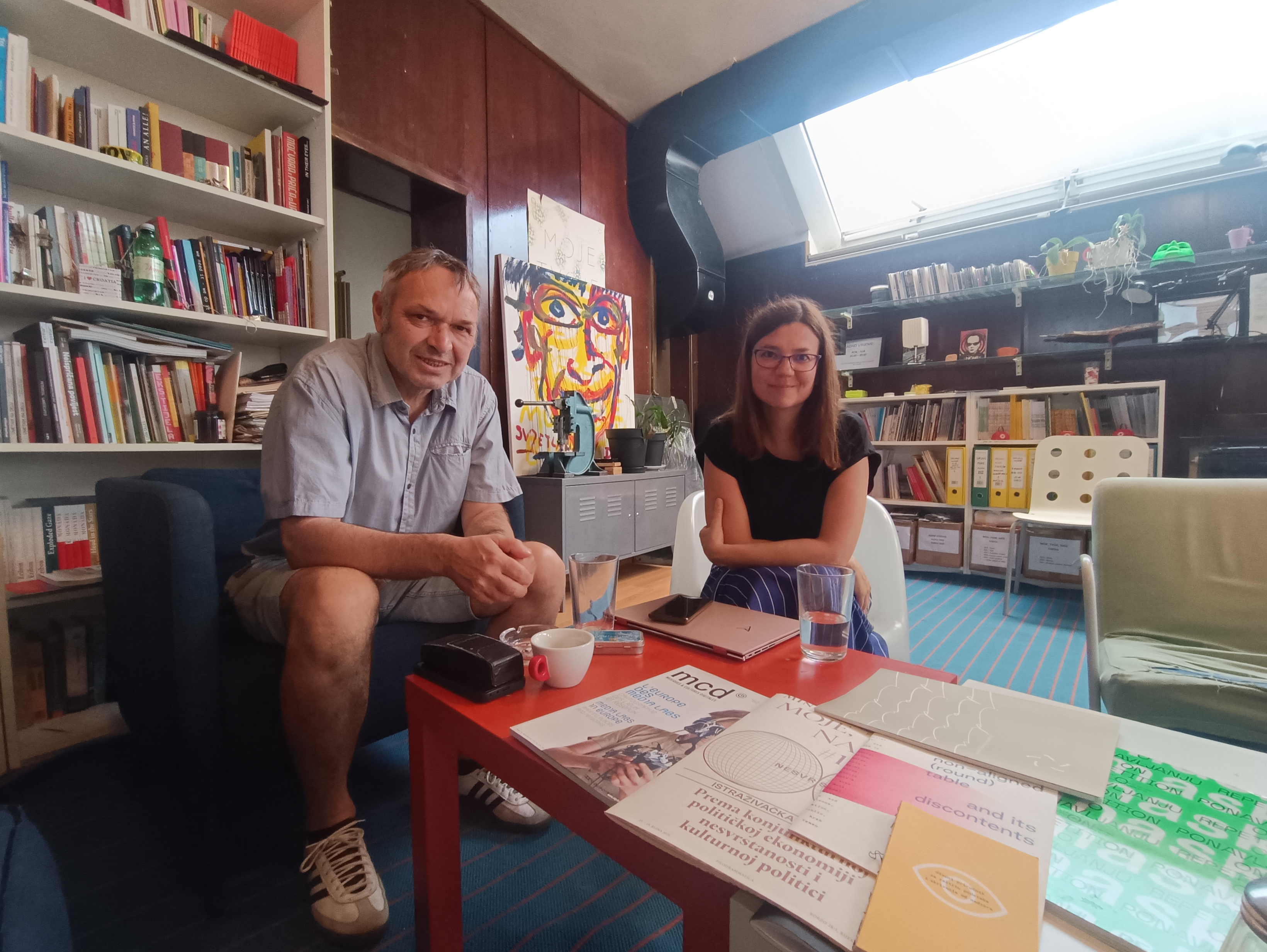 First meeting at the premises of Drugo More, hosted by Davor and Barbora. Yuri settles in with his second Harry Potter book while we also journey through past, present and future times. Founded in 1999, Drugo More has a quarter of a century of cultural activism, tactical media and hybrid arts under its belt, through its mediation activities, civic actions, festivals, exhibitions and workshops.
