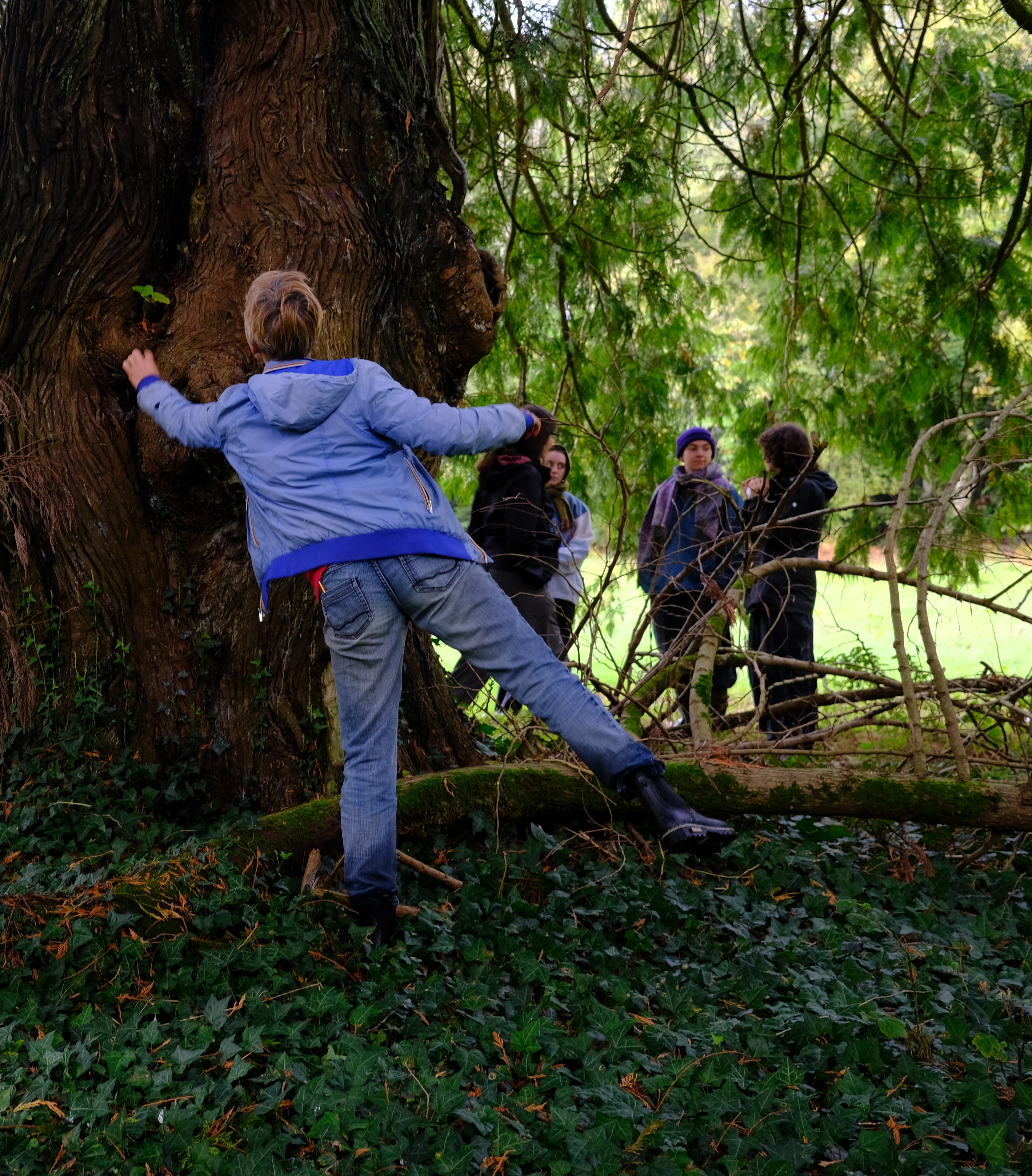 On est parties avec Anne et Karine pour marcher dans les bois. On est allées voir le gros chêne de la forêt, et on a aussi rencontré des châtaignes, de la boue et des feuilles, des idées et des sons, du temps.
