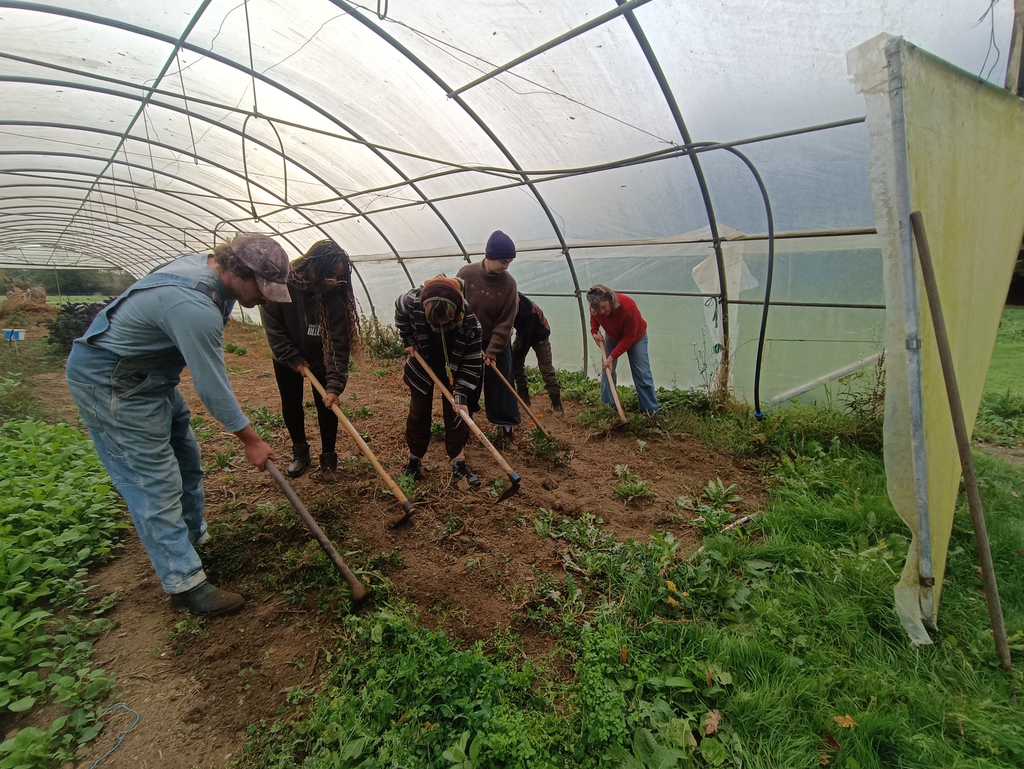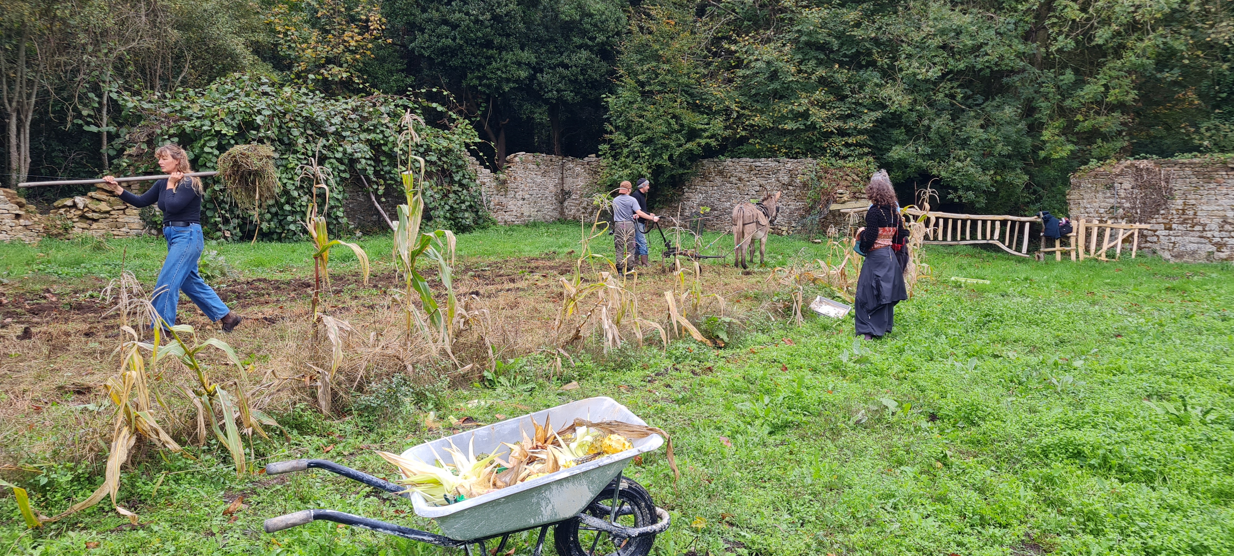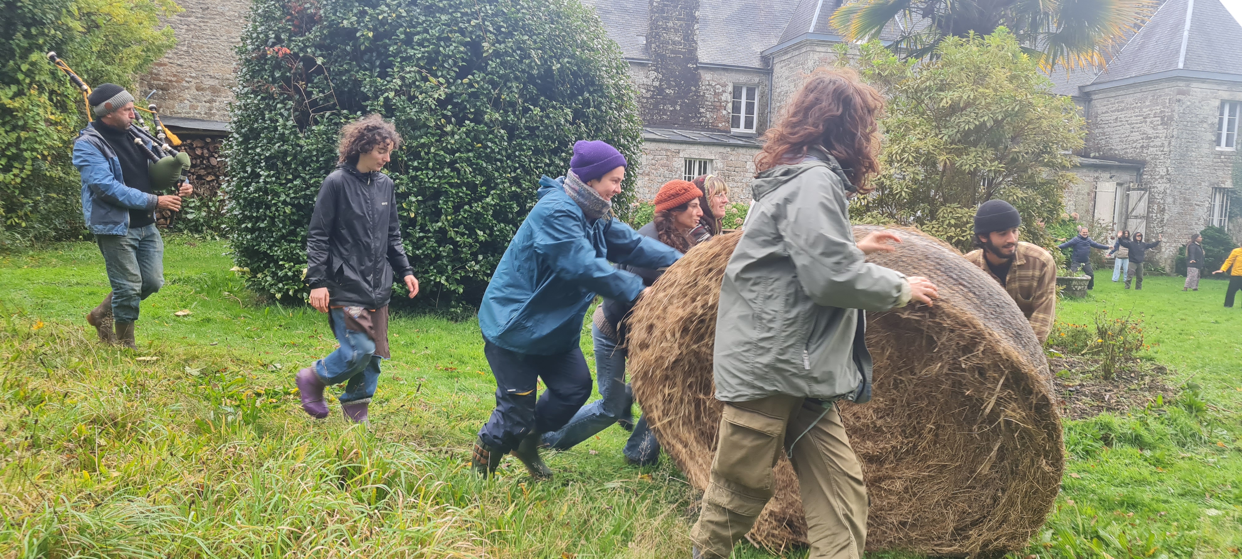 Avec Merlin, Yaëlle, Rebecca, la houe, Marie, Adèle, les châtaignes, Romane, Raphaële, Anna, la grelinette, Sidonie, le chat roux, Rosalie, Mathilde, Christelle, le passe-partout, Noah, Anne, H, le maïs sud-américain, Camille, la meule de foin, Winnie, Anne, Karine, Mérovée, Malo, le lavoir, Dom, Marina, Nina, Simon, un couteau à foin pas très aiguisé, Capris, Riley, thuya doré, l’orage, le kiwano, les poêles, Catherine, David, Patrick, Guénaële, les moutons, Benoît, le feu, le vent.